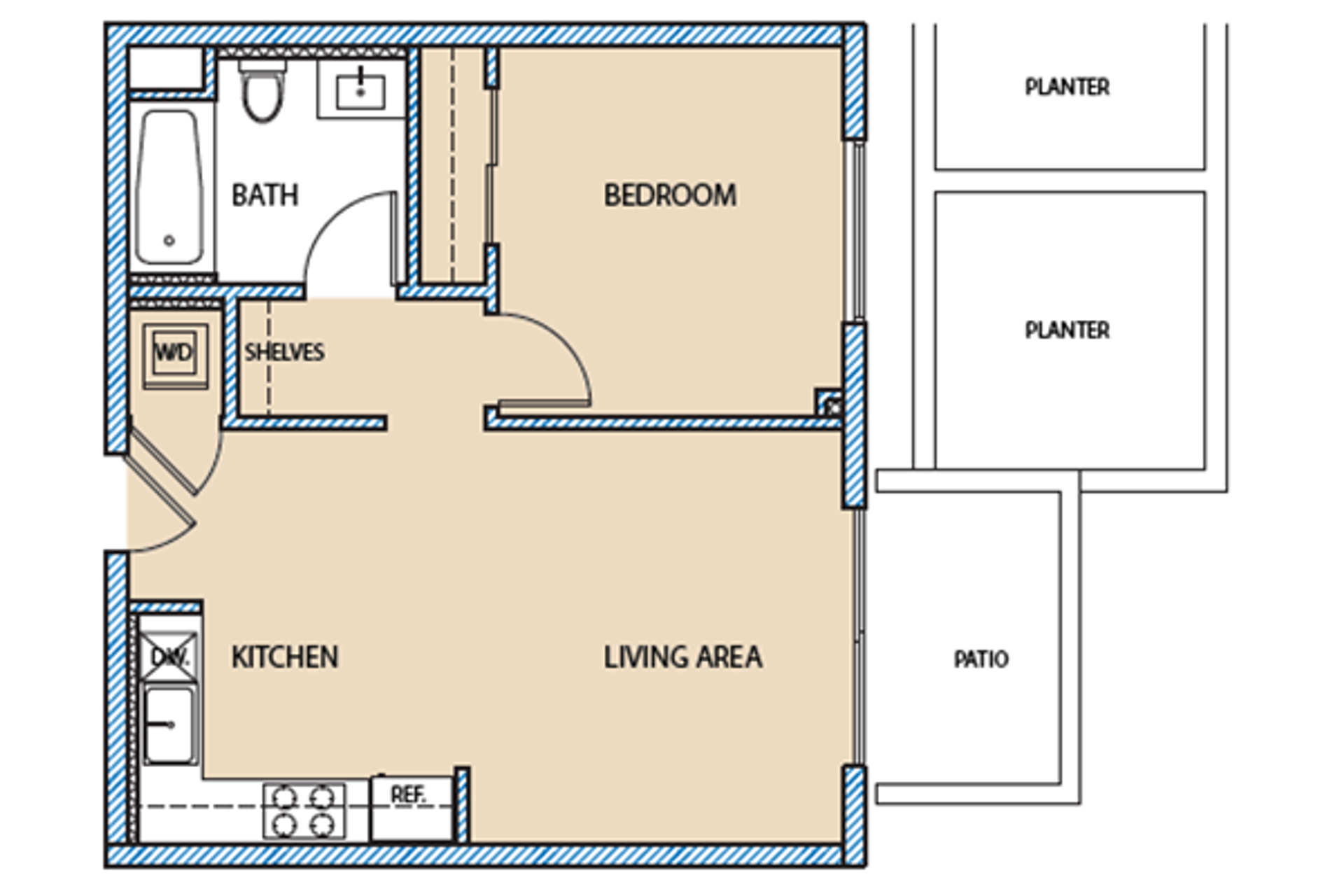 This 683 square foot one bedroom includes: